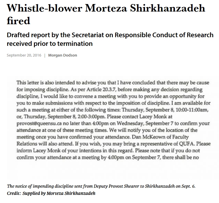 Munro: “Four of Smith’s papers have subsequently been retracted by scientific journals at the urging of whistleblowers Mort Shirkhanzadeh and Chris Pickles of Queen’s mining and materials department. The most recent retraction this fall was made by the European and British editors of the Journal of Materials Processing Technology, who pulled one of Smith’s duplicate papers saying it was “a severe abuse of the scientific publishing system.””