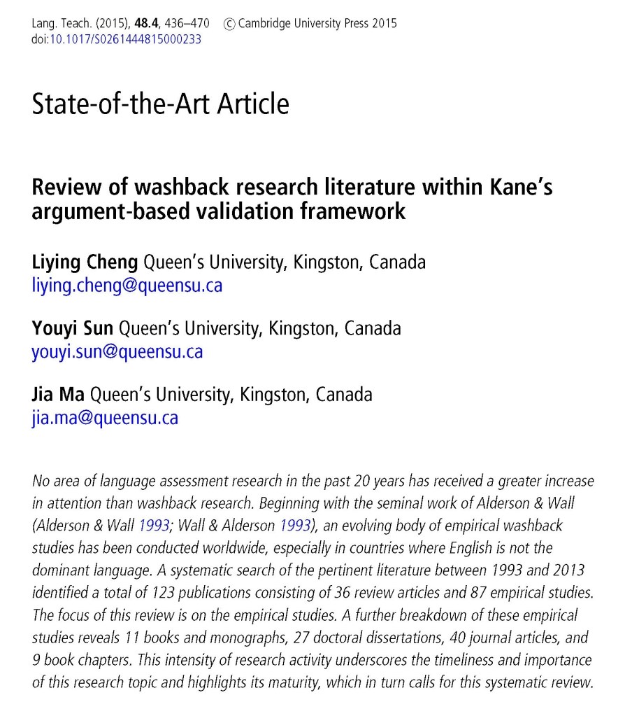 Liying Cheng, Queens University – “Since 2000 after [sic] Liying joined Queen’s Faculty of Education, she has obtained research funding totalling more than 1.7 million Canadian dollars. In addition, she has conducted more than 220 conference presentations and has more than 140 publications. Her recent books are Assessment in the Language Classroom: Teachers Supporting Student Learning (co-authored with J. Fox, 2017); Language classroom assessment (single-authored, TESOL, Inc., 2013)” https://educ.queensu.ca/liying-cheng Last accessed 12/2019